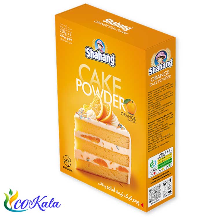 - 🔹 نام کالا: پودر کیک پرتقالی 500 گرم شاهنگ